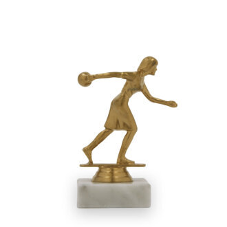 Figurka bowling žena, 13 cm, zlatá mat, včetně podstavce
